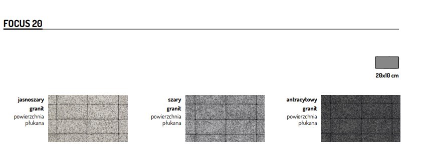 Focus to zestawienie 4 prostych formatów: 10×10, 10×20, 30×30, 40×40 o szorstkiej, płukanej powierzchni. Każdy kształt pakowany jest osobno.