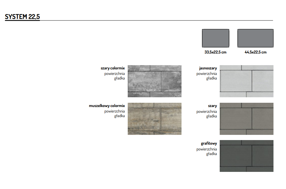 System składający się z dwóch kształtów płyt o szerokości 22,5 cm. Zaprojektowany z myślą o wysokiej estetyce i uzyskaniu nawierzchni o prostym, nieprzypadkowym rysie fug.