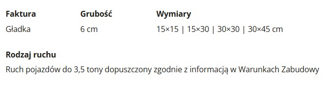 - Odporność: mrozoodporna, odporna na ścieranie