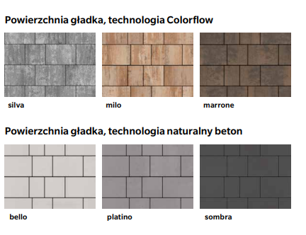 Nowoczesne płyty brukowe Umbriano, z unikalną technologią barwienia Colorfusion, dedykowane dla osób ceniących sobie oryginalnośc i wygodę. Duże, wygodne formaty kamieni zastosowane do aranżacji wokół posesji nie przytłaczają otaczającej architektury lecz dodają jej majestatu. Płyty brukowe średniego formatu, bezfazowe, przeznaczone na podjazdy i ścieżki. Wierzchnia impregnacja płyty podwyższa znacząco poziom ochrony przed zabrudzeniami, odporność na mróz i sole odladzające. Proces hydrofobizacji, któremu poddane są płyty podczas produkcji ogranicza wchłanianie wilgoci z opadów deszczu lub gruntu co wyraźnie redukuje naturalne wykwity wapienne. Innowacyjna technologia barwienia Colorfusion sprawia, że na powierzchni płyt widoczne są ziarniste żyłki nadające wyjątkowy charakter nawierzchni. Płyty z dystansami ułatwiającymi układanie. Grubość płyt: 6 i 8 cm.